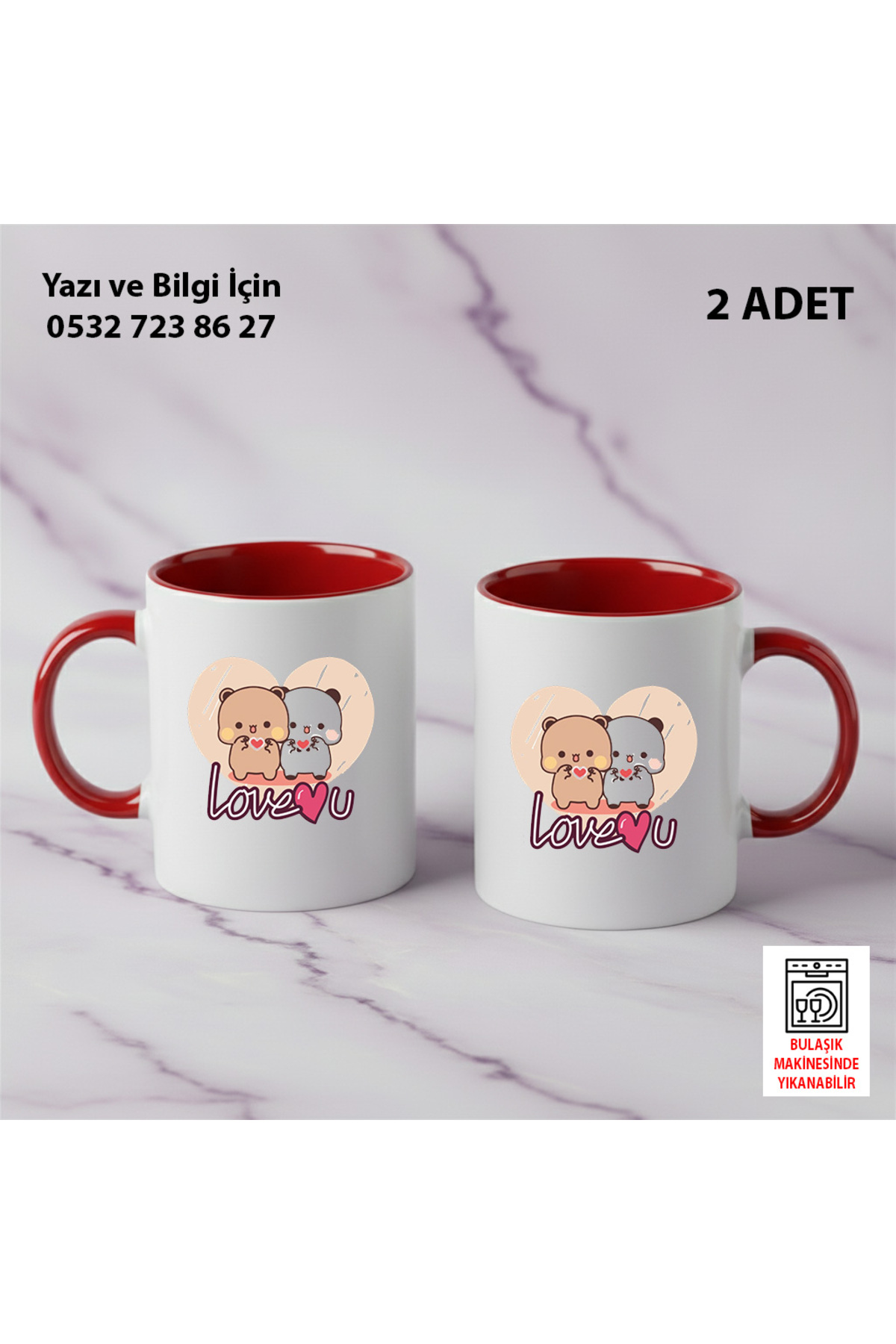 – Sevgililer Günü temalı tasarımıyla özel anlarınıza eşlik edecek 2’li kupa seti.; – 400 ml hacmiyle kahve, çay veya sıcak içecekleriniz için ideal boyut.; – Türkiye’de üretilmiş kaliteli seramik materyalden yapılmıştır, uzun ömürlü kullanım sunar.; – Gıda temasına uygun olarak tasarlanmış olup, bulaşık makinesinde rahatlıkla yıkanabilir.; – Sevgiliye doğum günü hediyesi olarak mükemmel bir tercih, duygularınızı özel bir şekilde ifade edin.;