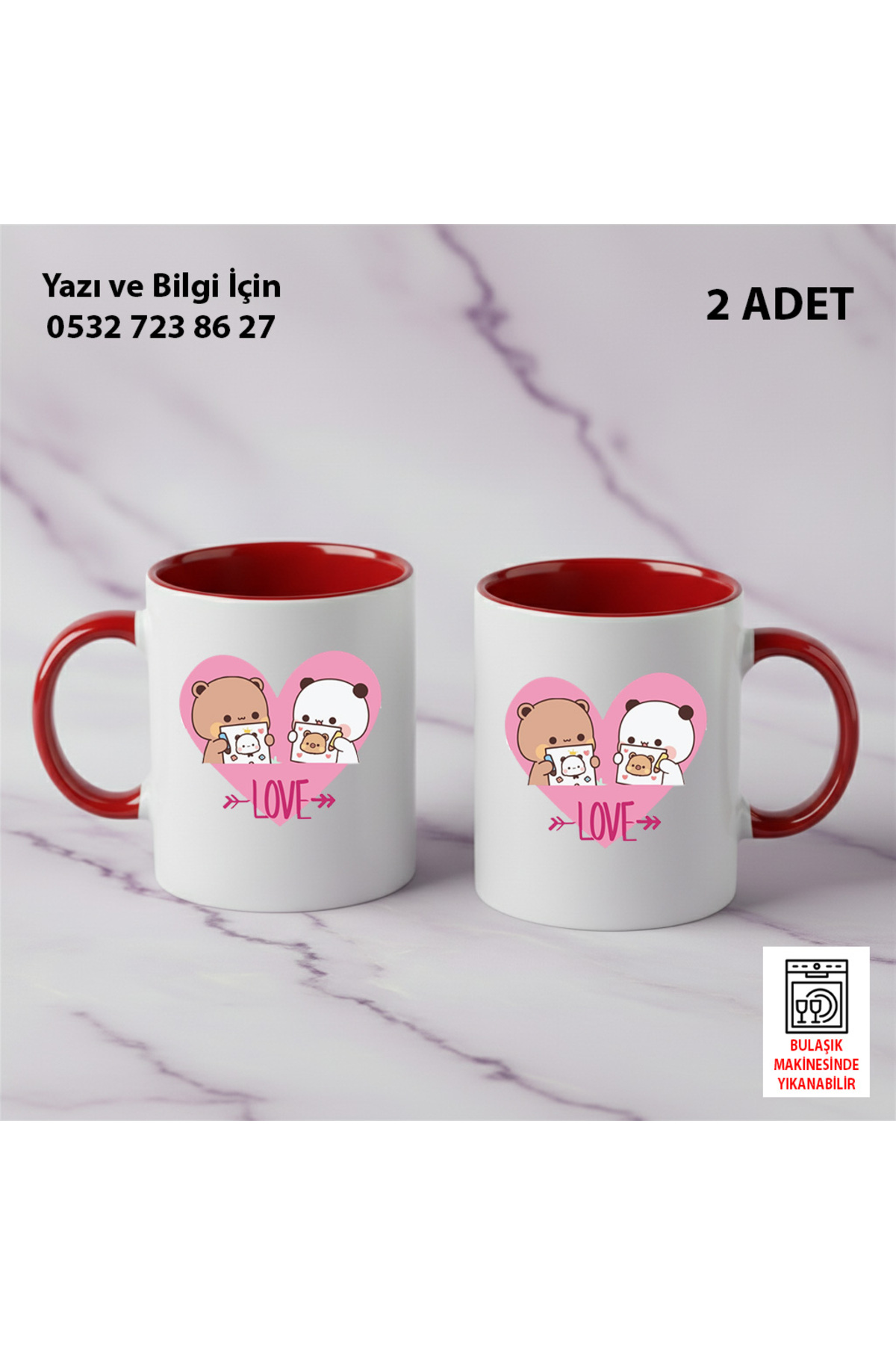 – Sevgililer Günü temalı tasarımıyla özel günlerinizi kutlamak için ideal bir hediye seçeneği sunar.; – 2 parçadan oluşan set, çiftlerin birlikte keyifli vakit geçirmesi için mükemmel bir eşlikçidir.; – 400 ml hacmiyle kahve, çay veya sıcak çikolata gibi içeceklerinizi rahatça yudumlayabilirsiniz.; – Bulaşık makinesinde yıkanabilir olması sayesinde temizliği kolay ve pratiktir; zamandan tasarruf sağlar.; – Gıda temas sembolü ile sağlığa zararlı maddeler içermez; güvenle kullanabilirsiniz.; – Türkiye’de üretilmiştir; yerel üretimle desteklenen kaliteli bir üründür.; – Seramik materyali sayesinde dayanıklılık ve şık bir görünüm sunar; uzun süreli kullanım için uygundur.;