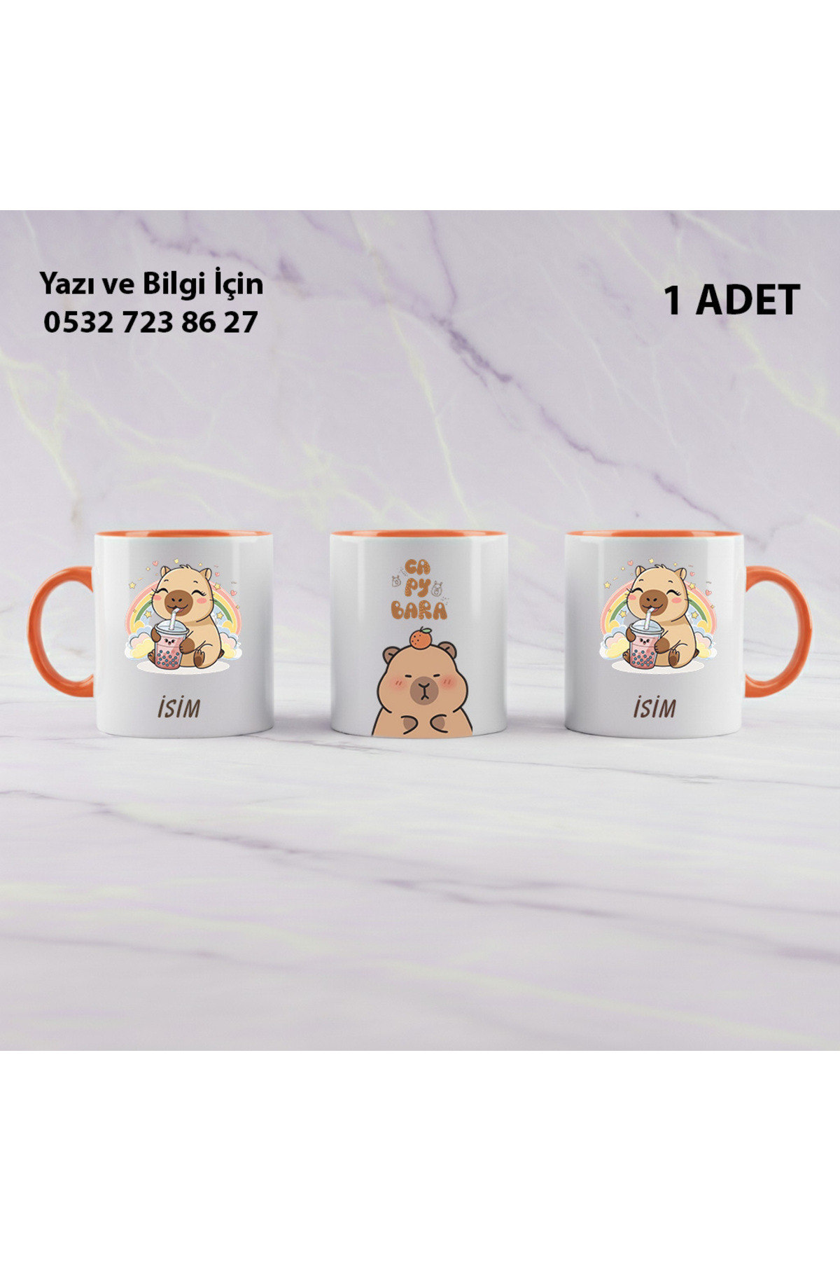 Capybara Tasarımlı Çift Taraf Baskılı Kişiye özel isimli Kupa Bardak