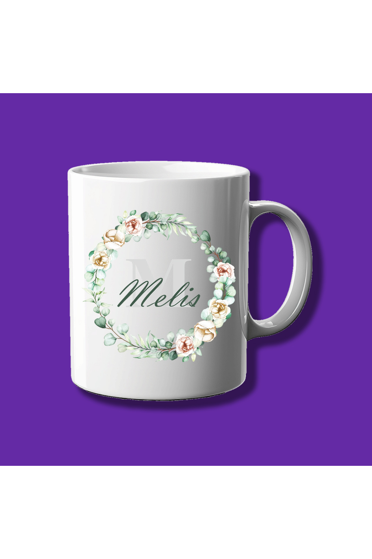 Kişiye Özel Çiçekli Çerçeve Tasarımlı Harf ve İsim Kupası – Hediyelik Elit Kupa Bardak