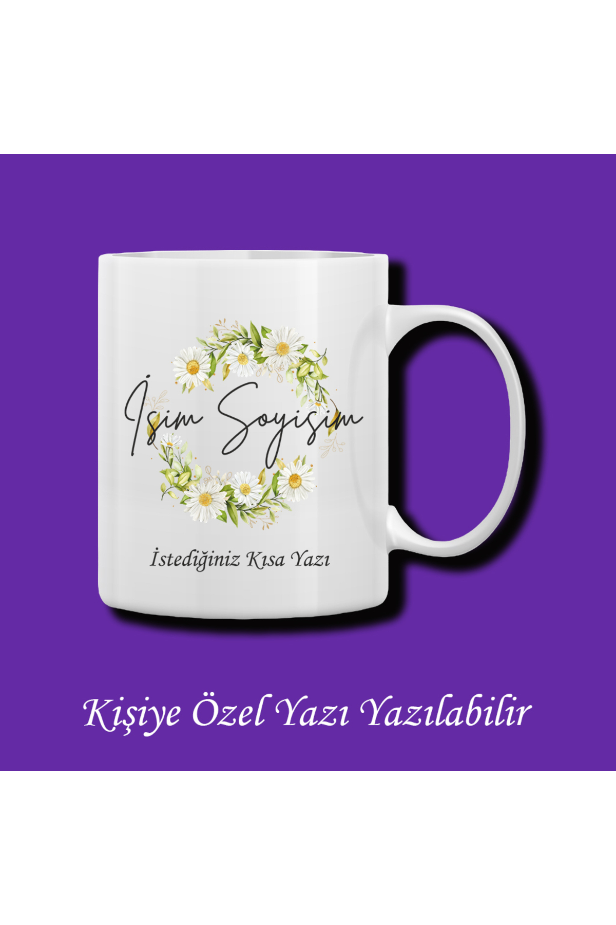 Kişiye Özel Papatya Tasarımlı İsimli Yazı Yazılabilir Kupa Bardak