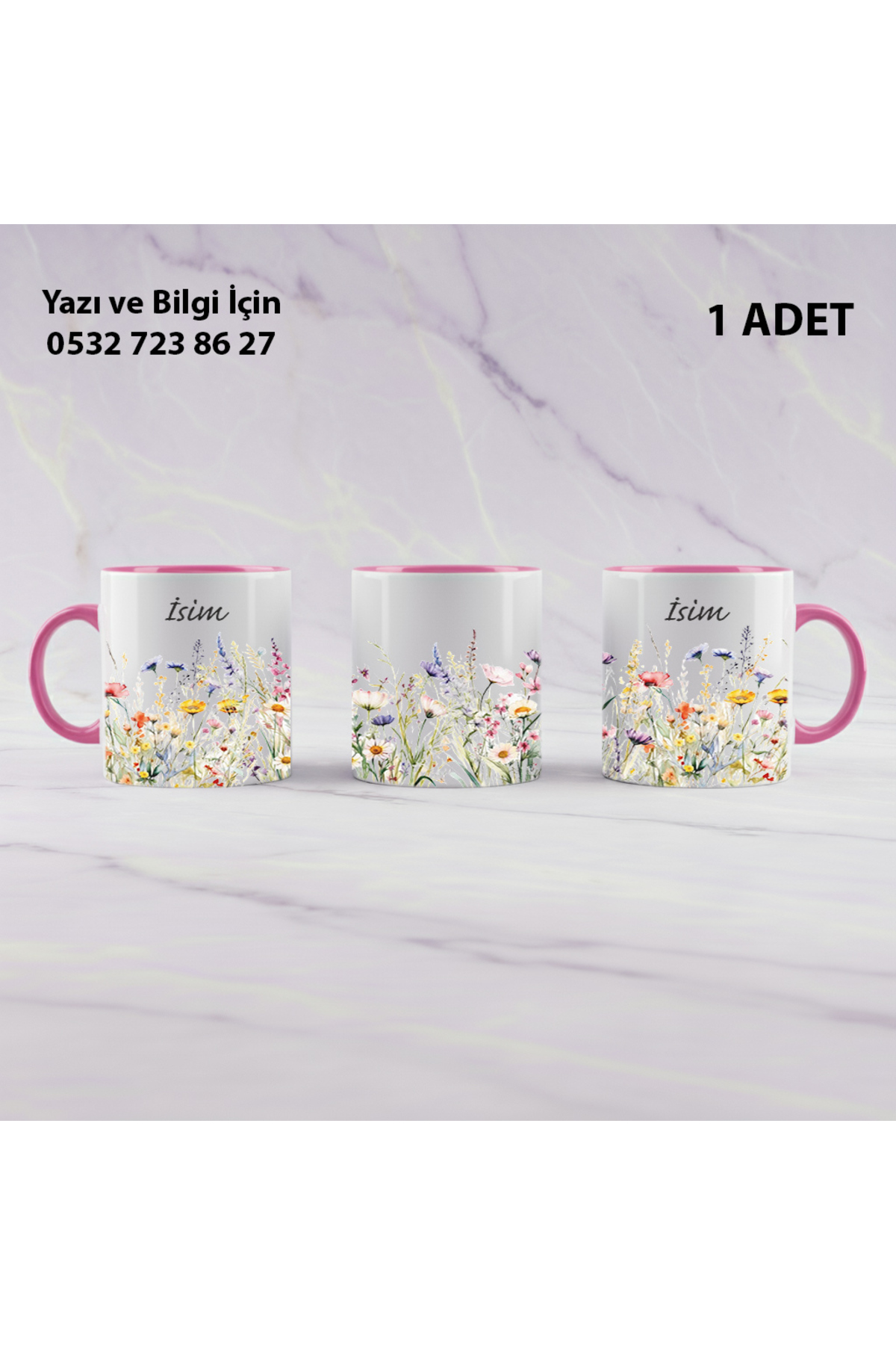 Öğretmenler Günü Hediyesi Kişiye Özel İsimli ve Çiçek Desenli Kupa Bardak