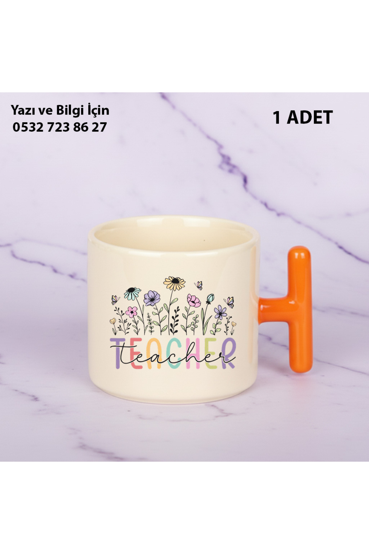 Öğretmenlere Özel Teacher Baskılı Kişiye Özel İsim yazılabilir T Kupa Bardak -Öğretmene Hediyelik